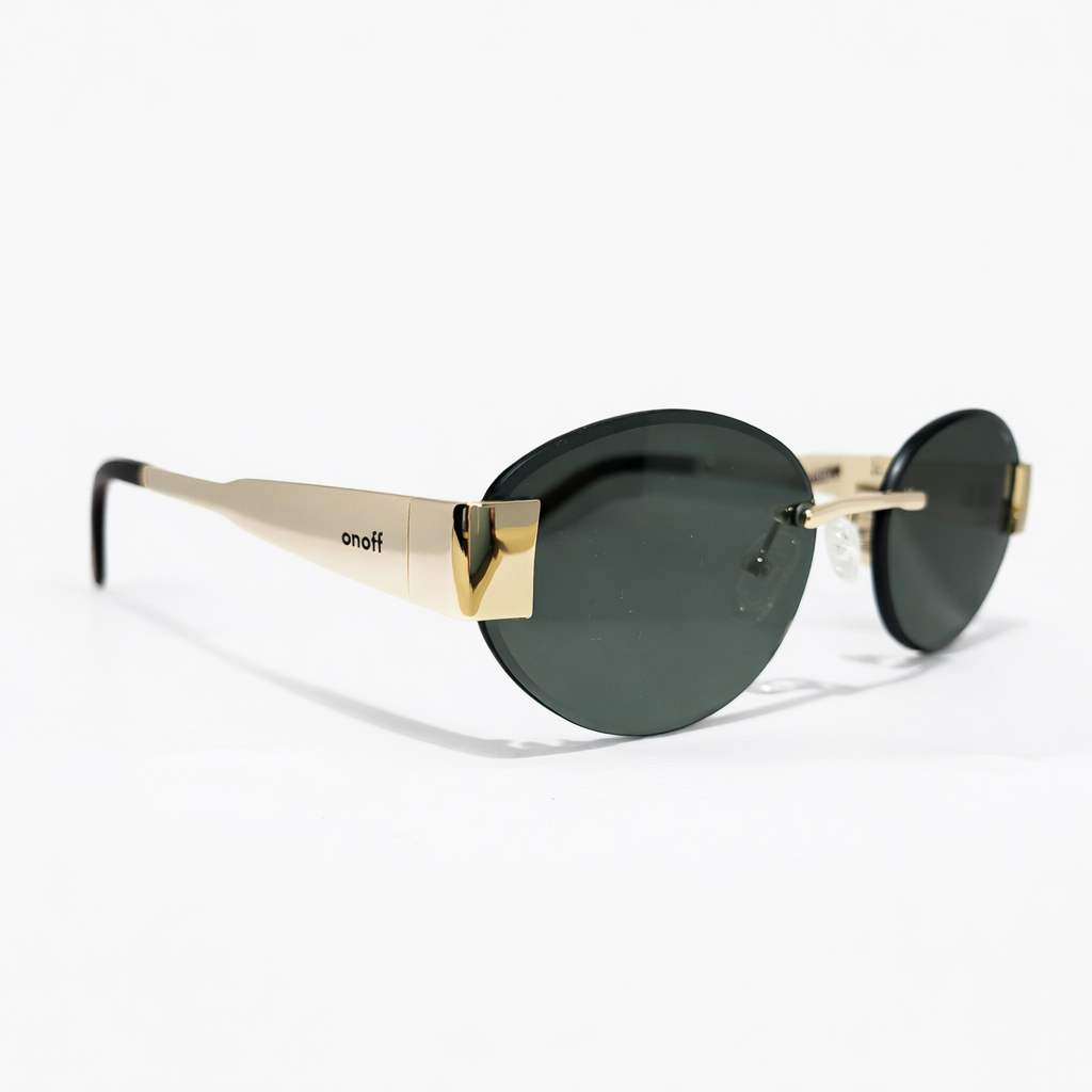 Un diseño distinto desde el primer vistazo. Este modelo sin aro deja las lentes completamente protagonistas, logrando una estética liviana y sofisticada. El puente metálico dorado y los terminales geométricos aportan estructura y contraste, generando un equilibrio perfecto entre minimalismo y carácter.